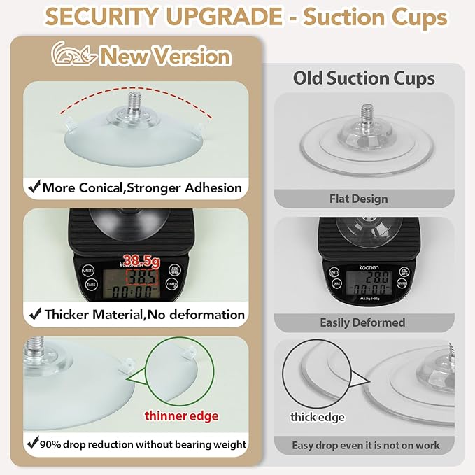 - 😺UPGRADED SAFETY - 4 powerful upagraded suction cups and 2 larger base - Different from the old Pupagree version and other brands on the market, we use 4 more-conical suction cups and 10% larger contact area base to enhance the suction power and stabliation, ensuring the cat perch holds well when cats jump up&down, and stays in place firmly even when the cat bed is not bearing weight.