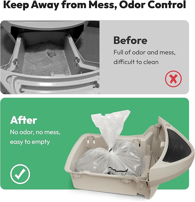 - [Leak-Proof & Tear-Resistant] Made from premium material with a robust seal, these liners are tear-resistant, scratch-proof, and waterproof, ensuring no leaks or odors. Keep your litter box cleaner and make changing liners effortless