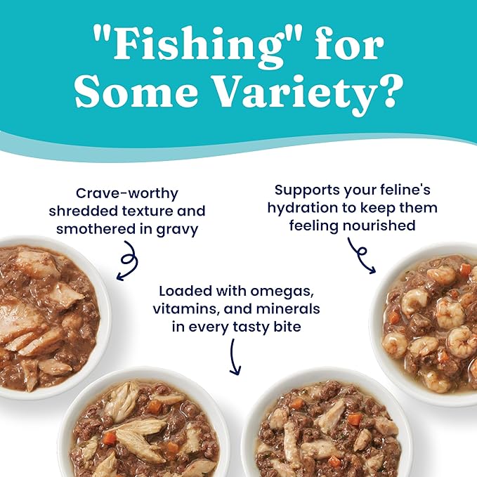 - TEXTURE VARIETY FOR ALL PREFERENCES: A combination of smooth pates and tender shreds in savory gravy, perfect for cats with varying tastes