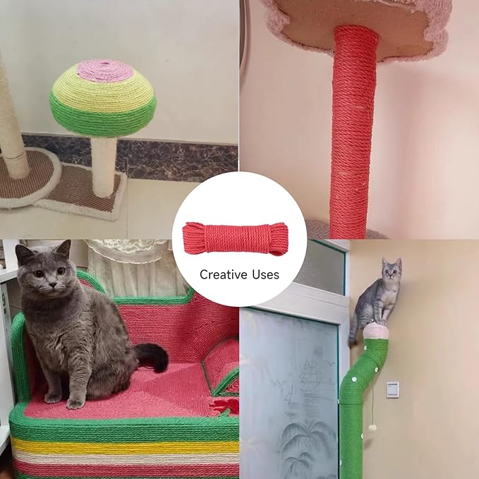 - Wide Application:This Sisal Twine Rope Can Be Wrapped to The Furniture, Flowerpot, Desk Leg, Bed Leg, Cat House, Cat Tree, Cat Tower or Anywhere Your Cat Like. Also Perfect for Decorations and Wrapping Furniture Legs or Any Area Your Cats Love to Scratch.cat scratch post rope.cat scratching post replacement.