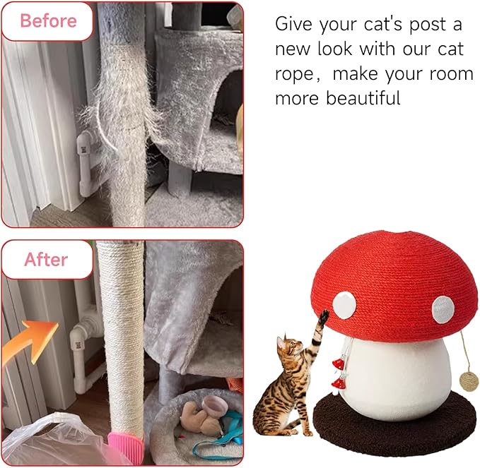 - Make Cat Pillars More Beautiful:You Can Design Cat Scratching Post Tree According to Your Own Preferences,Replace Your Beloved Cat'S Cat Climbing Rack or Cat Tree Twine, This Will Make The Scratching Post More Beautiful,It Allows Cats to Play Better.Includes a sisal ball for cats to play with