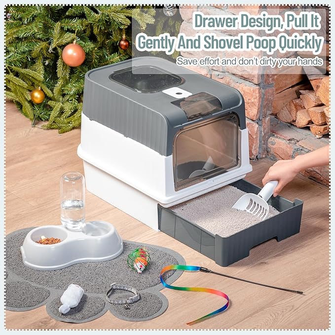 - Kitten Starter Kit: the package includes 1 detachable drawer kitten litter box, 1 scoop, 1 light gray litter mat (about 23.6 x 17.7 inches/ 59.94 x 44.96 cm), 1 cat bowl, 2 cat toys, 1 cat teaser stick, and 1 adjustable cat collar with a bell (about 7.5 inches/ 19.05 cm to 12.6 inches/ 32 cm), good for new cat owners to welcome their new cats home