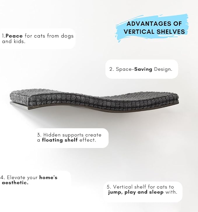 - Space-Saving Design: Free up floor space from cat tower and maximize your room by using wall mounted shelf vertically! Our cat wall bed is like a cloud, cat tree that creates more room for you and endless entertainment for your feline. Vertical cat house.