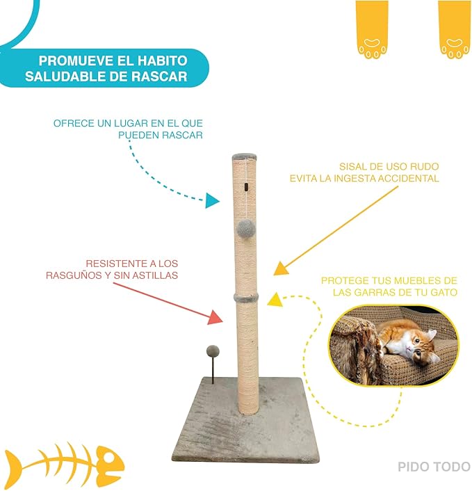 - 🐱SAFE AND DURABLE SCRATCHING: Our scratching post is designed with sisal, a safe option for cats to scratch and play, while protecting your furniture. This product is manufactured to be durable and resistant, providing a reliable solution to meet your pets' needs and keep your furniture safe.