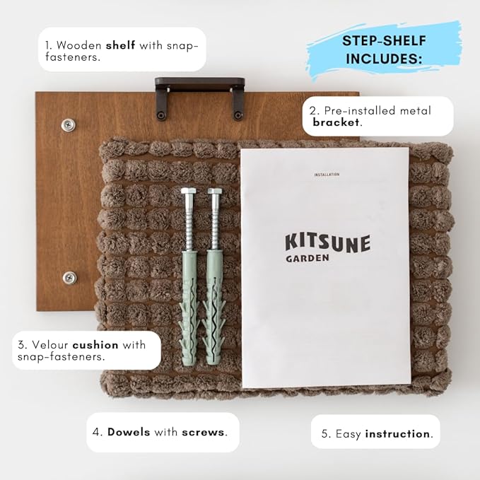 - Easy to install: Our cat mounted shelf for wall come to you with all the necessary hardware for easy installation: screws, dowels, brackets and step-by-step instruction. If you have any questions about the cat shelves, please feel free to contact us and we will reply immediately.
