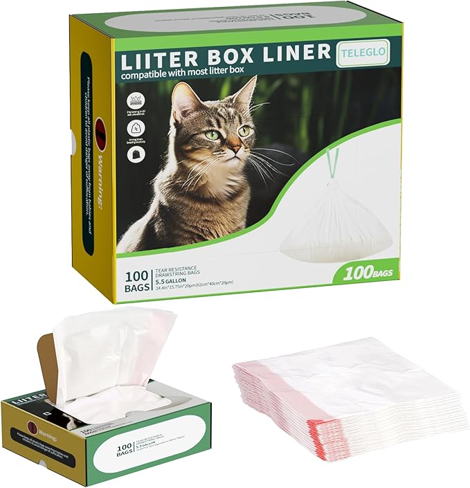 - Drawstring Design: Self-cleaning cat litter box liner bags adopt drawstring design, which are convenient for disposal, Simply grab the drawstrings and lift them, and these bags will tighten automatically to prevent any spills, tears, or odor keeping your cat litter box clean.