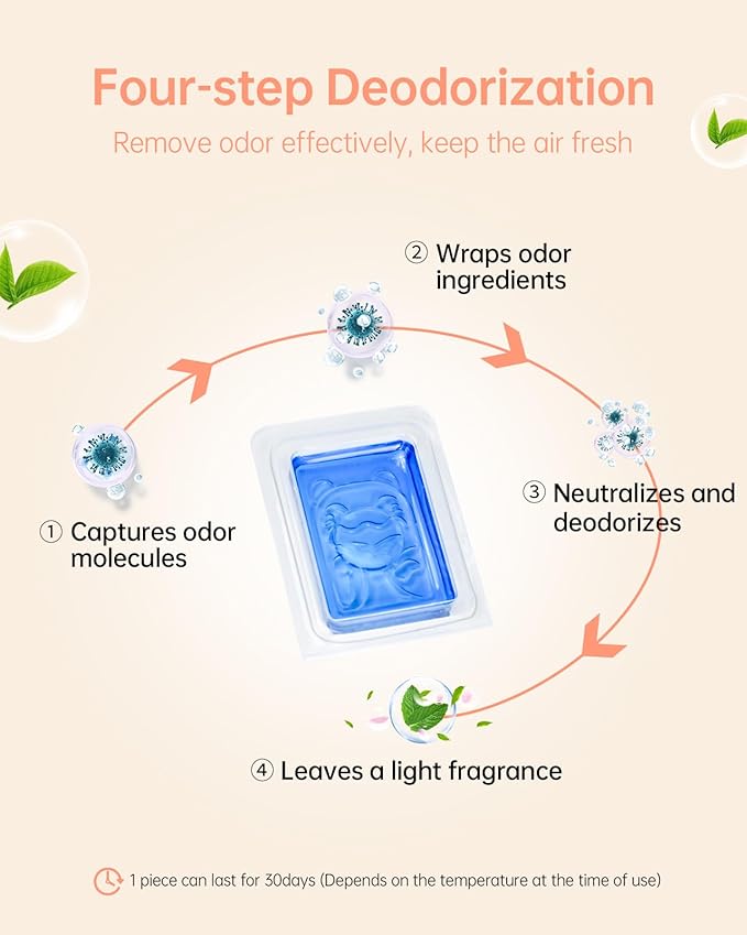 - 【Odor Elimination】This fragrance gel effectively deodorizes odors in four steps: first to capture odor molecules, the second to wrap odor ingredients, the third to neutralize and deodorize, and finally to leave a mild scent. It's a great tool for deodorizing and purifying the air. Most importantly, this scent is friendly to you and your pets