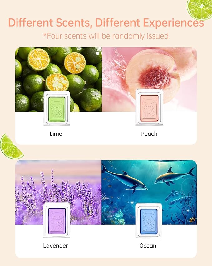 - 【Long-lasting Scent】This package is available in 4 pcs fragrance gel. 4 different colors and scents (Lavender, Lime, Peach, Ocean) are shipped randomly. The unique production process and formula make the fragrance gel release the fragrance stably and it can last up to 30 days. (Tips: It depends on the temperature at the time of use)