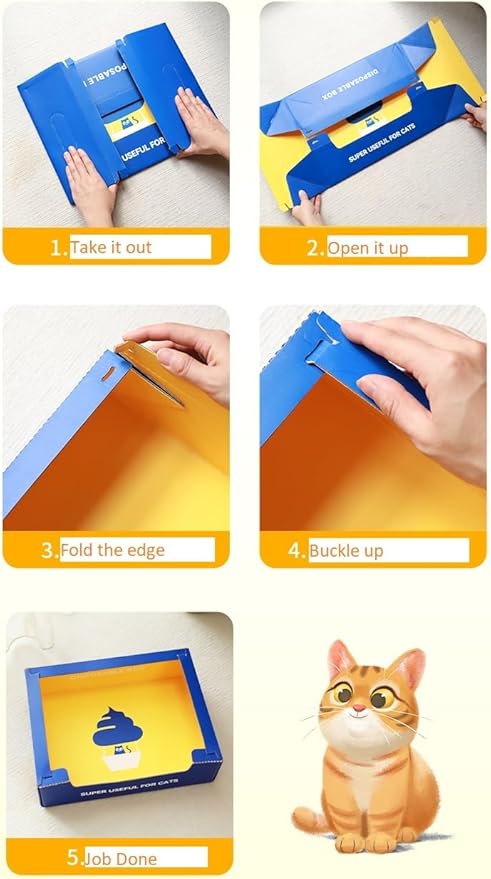 Disposable Cat Litter Box 1 Unit - Super Lightweight, Waterproof, Convenient for Travel and Indoor Use!