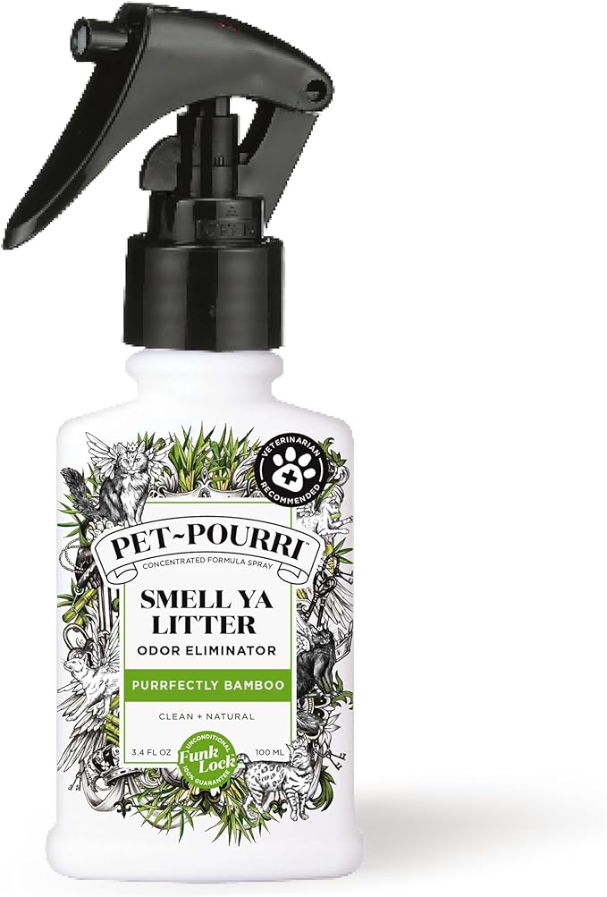 - Pet-Pourri Smell Ya Litter Box Odor Freshener Spray, Purrfectly Fresh, 3.4 Fl Oz : SAFE FOR OUR FURRY FRIENDS - Powerful odor freshener spray that can be used everyday to reduce odors from the kitty litter box by attacking the odor at its source - Vet Recommended!