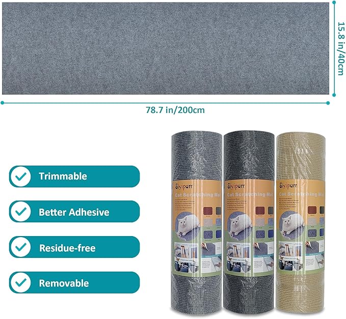 - 1. Cat scratch mat :Anti cat scratch furniture protector can be used on a variety of surfaces, such as wood, plastic, glass, concrete, leather and more.The self-adhesive couch cat scratch protector can be cut into any shape for use on cat shelves, wooden cat trees, cat towers, sofas or other furniture, making it a good protector and asisumption cat protectors for furniture board.Soft cat scratching mat protects hardwood boards from scratches and provides good friction and comfort for cats to jump on.