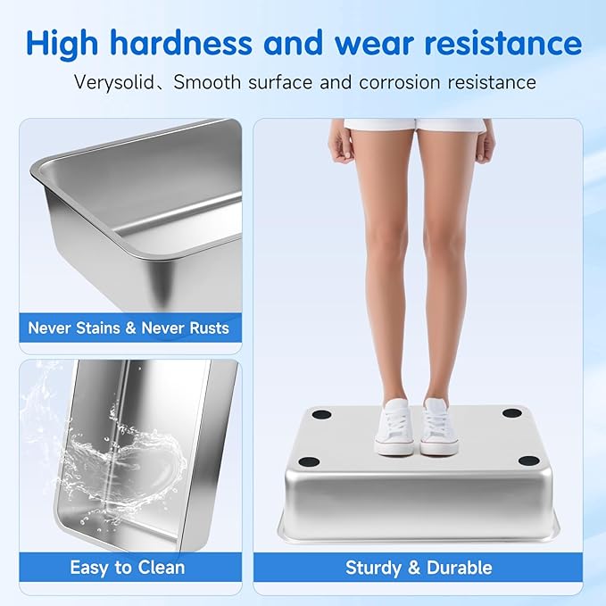 - 【Easy to Clean】 The stainless steel surface of the large litter box is smooth and wear-resistant, not easy to adhere to feces, and does not absorb odor, making it easy to clean and maintain a hygienic environment for your cats.