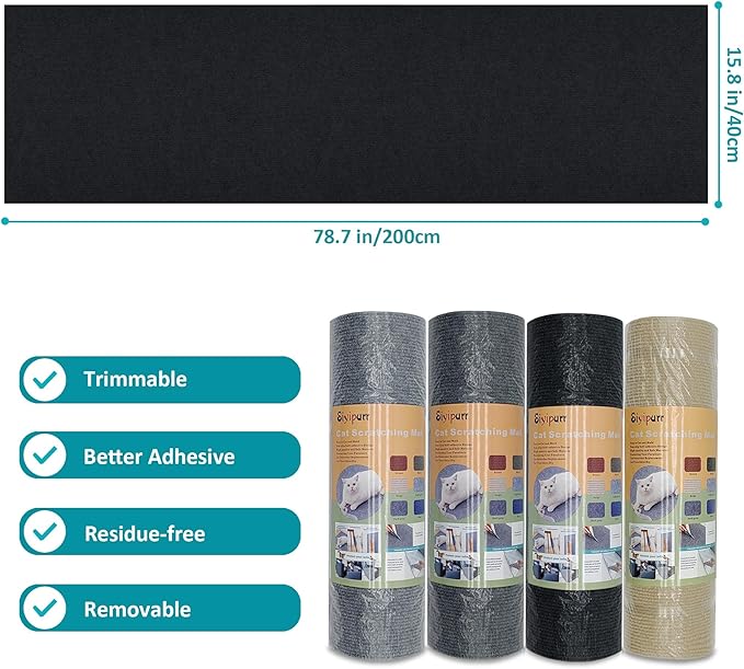 Cat Scratch Furniture Protector,78.7"x15.8"Cat Scratching Mat,Trimmable Self-Adhesive Cat Couch Protector,cat Wall Scratcher,Pad Replacement for Cat Tree Shelves and Post (Black)
