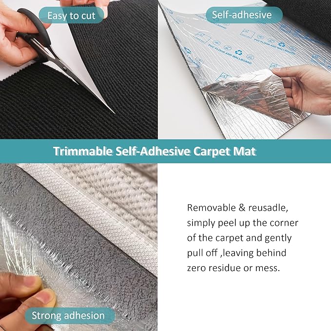 - 3.Non-slip Self-adhesive Design: The bottom of the trimmable self-adhesive carpet cat scratcher is made of 100% self-adhesive material, which can be firmly pasted on any wood, glass, cotton and linen fabrics, and leather surfaces, with strong adhesion and will not be easily torn off, so you can rest assured that it will be used.