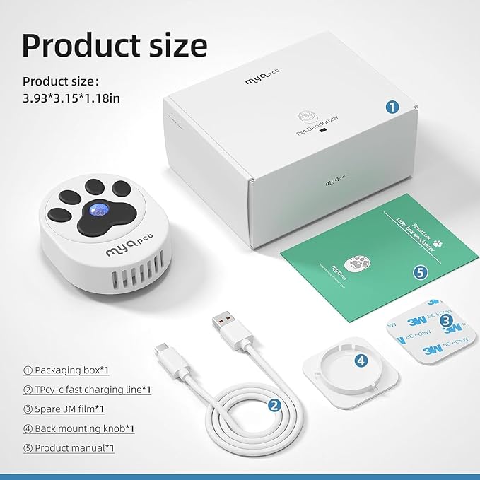 - High-Performance Battery:Myapet litter box odor eliminator has a built-in high-performance lithium battery with a long lifespan and low energy consumption