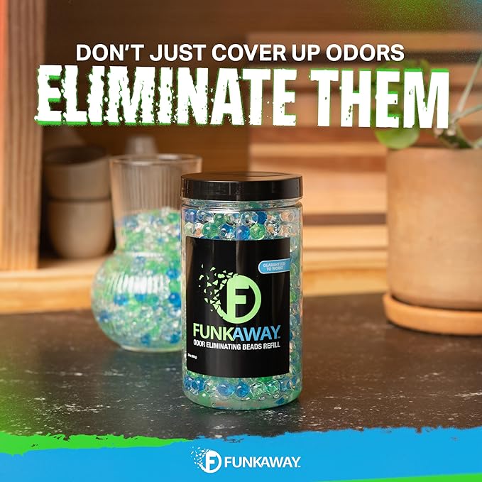 - EXTREME ODOR ELIMINATING BEADS REFILL: Don't mask odors with air fresheners, eliminate them with FunkAway Odor Eliminating Beads. Refill your odor absorbing bead canisters to continuously soak up funky smells and remove them from the air.