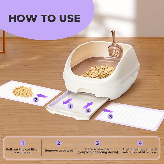 - Easy Cleanup: No need to scoop urine clumps, no more scrubbing and scraping litter boxes; Using disposable litter box pads makes litter box cleanup a breeze and keeps the entire litter box fresh and tidy