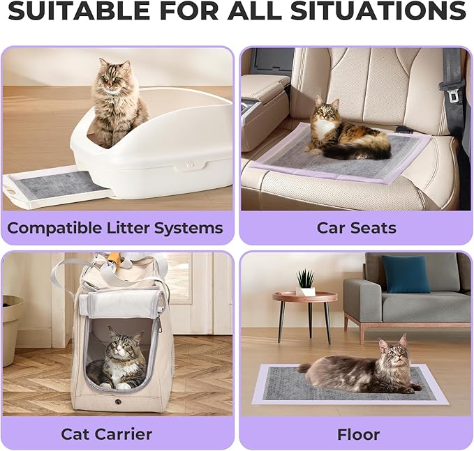 - Odor Control: The disposable activated carbon litter pads absorb excess liquid seeping out of the litter and the cat litter pads have a fresh scent, which smells fresh and helps control odors; The cat litter pads are ideal for single or multi-cat households and could make your home smell fresh and clean, bringing you and your kitty closer together