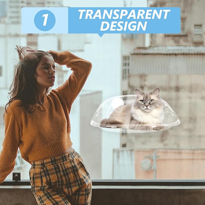 Cat Window Hommock Bed - Clear Plastic with 2 Strong Suction Cups, Space-Saving Window Mounted Shelf for Indoor Cats