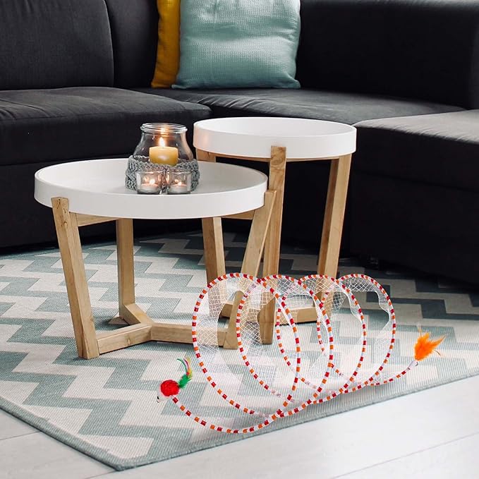 - Portable and Foldable: Our cat toy tunnel is easy to use and easily collapsible, allowing you to store and carry it effortlessly. Whether at home or outdoor, your cat can enjoy playtime whenever and wherever. When not in use, simply fold it up for space-saving storage.