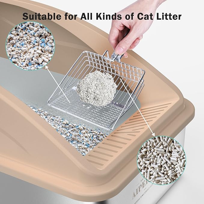 - ANTI-URINE LEAKAGE: The cat litter box is designed with a leak-proof design, including a sealed bottom and a curved shape. Superior sealing - ensures liquids are contained within the stainless steel cat litter box, keeps your home clean and no odor.