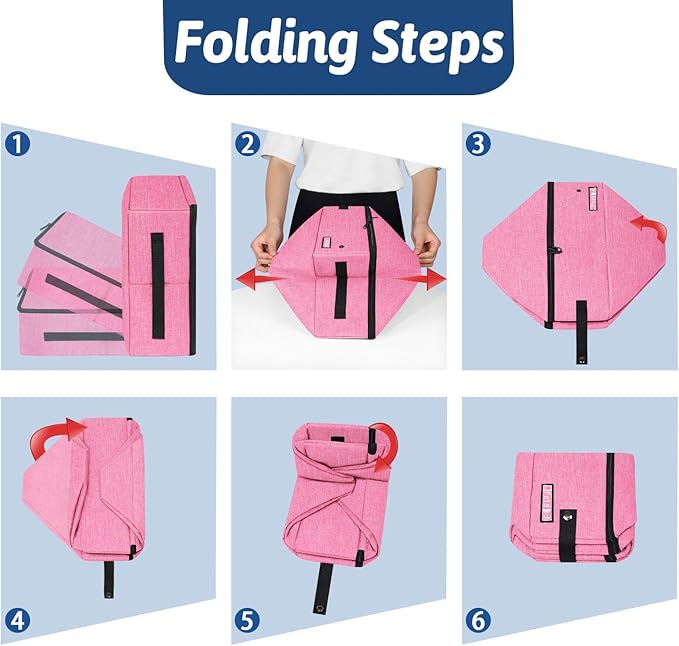 - [Easy to carry]Special double handle design provides more carrying options, the travel kitty litter box folding is also very simple, and the folded litter box can be carried in a suitcase or handheld. The large space of the cat litter box with a lid can even be used as a kitty travel bag to put some pet supplies(pet treats, tissue, water bottle...), it will be convenient and multifunctional!
