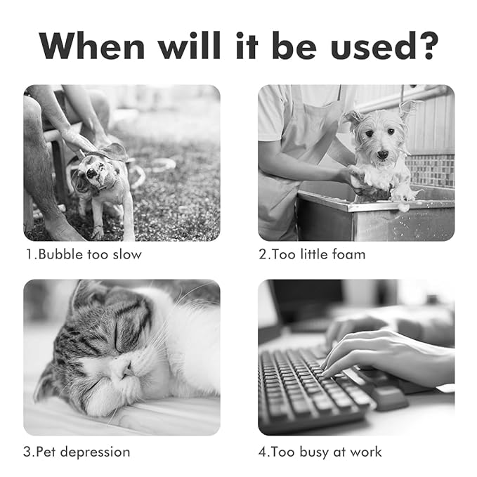 - 【Fast Foaming】 The soft massage particles on the dog bath brush head can make the Shampoo quickly produce thick foam. The rich foam can make the pet's fur cleaner and make the dog's bath more comfortable.
