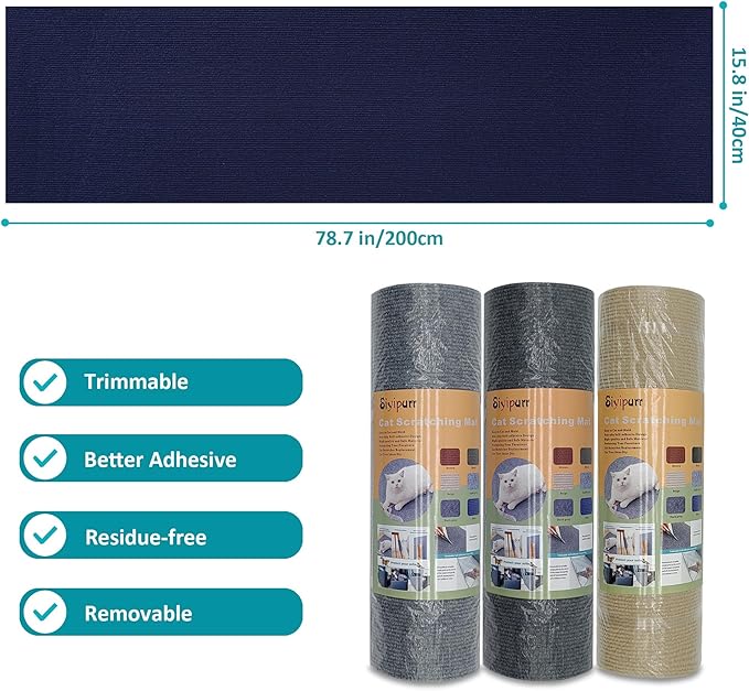 Cat Scratch Furniture Protector,78.7"x15.8"Cat Scratching Mat,Trimmable Self-Adhesive Cat Couch Protector,cat Wall Scratcher,Pad Replacement for Cat Tree Shelves and Post(Navy Blue)