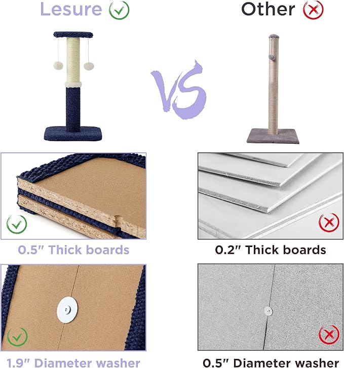 - Built to Last: The scratching post features solid construction with sturdy materials and a pet-safe carpet covered base, making it resistant to scratching and highly durable. The sisal twine used for wrapping ensures that this post can withstand even the toughest claws. Additionally, the wide and thick base, made from a premium wooden board, adds extra stability to the design. It's a reliable choice for your cat's play and scratching needs.
