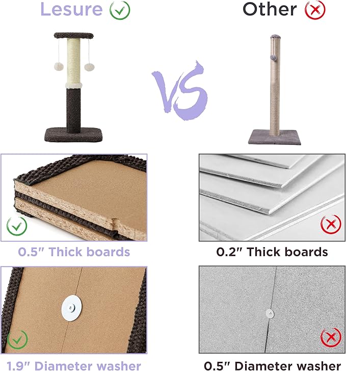 - Built to Last: The scratching post features solid construction with sturdy materials and a pet-safe carpet covered base, making it resistant to scratching and highly durable. The sisal twine used for wrapping ensures that this post can withstand even the toughest claws. Additionally, the wide and thick base, made from a premium wooden board, adds extra stability to the design. It's a reliable choice for your cat's play and scratching needs.