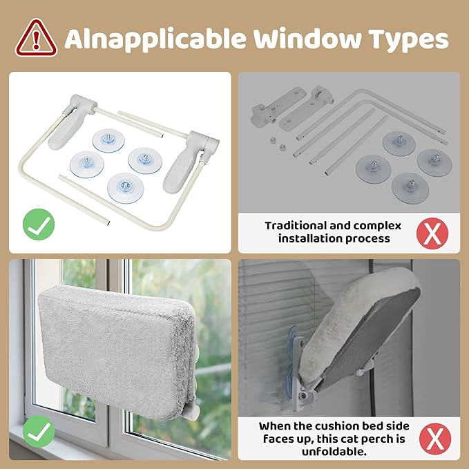 - đșăFirm Grip Suction CupsăOur Cat Window Bed features top-of-the-line suction cups for enhanced security. They engage instantly, creating a strong hold that promises stability for your kitty's window cat door perch.