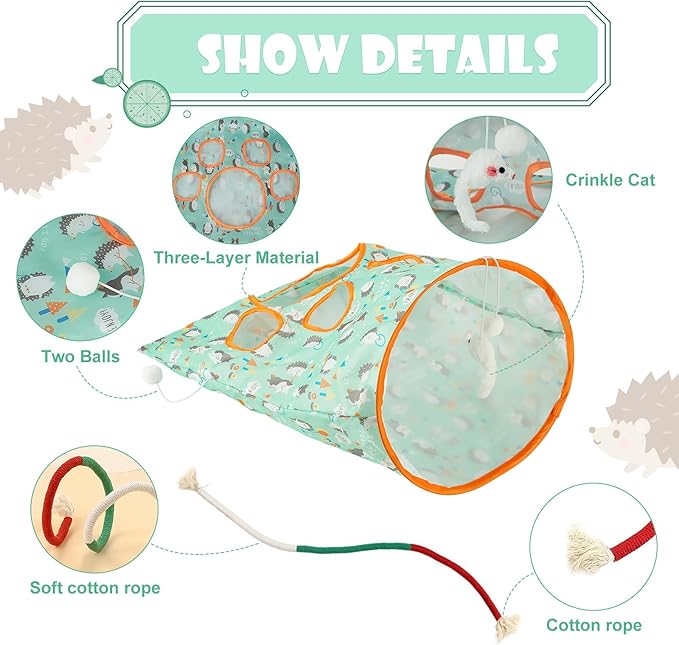 - 【Pet Friendly Material】Cat tunnel toy is made of steel wire material that designed to meet all applicable safety standards. The rope toys are made from high quality cotton rope, they do not contain iron wires inside, ensuring the safety of your cat. Materials are safe and pet friendly, ensuring these toys are safe for your pet.