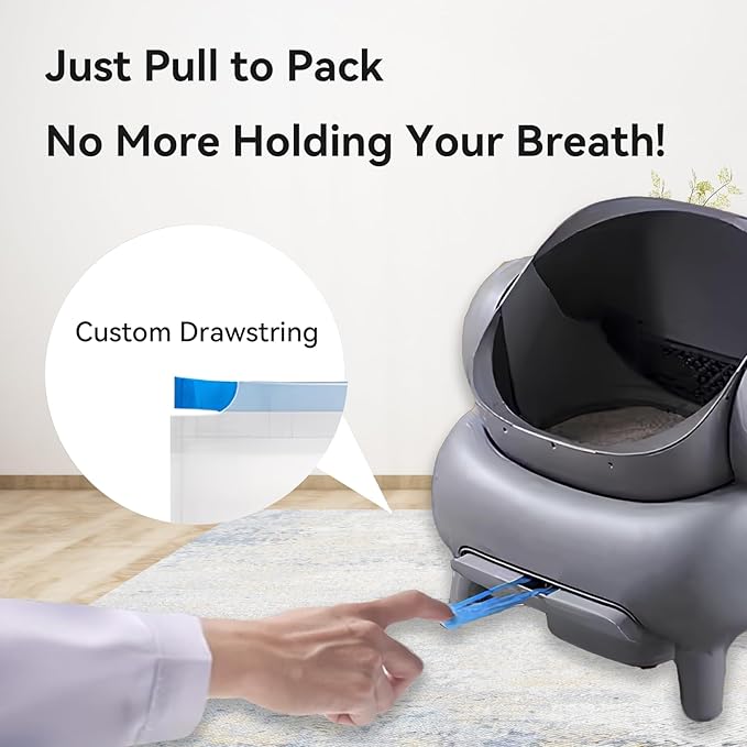 - Touch-Free Waste Disposal, No Unpleasant Odors: With these litter bags, you won't have to touch or see the waste. Before pulling out the waste drawer, simply pull the drawstring to seal the bag. Open the drawer without enduring any unpleasant smells, ensuring a hygienic and comfortable cleaning experience