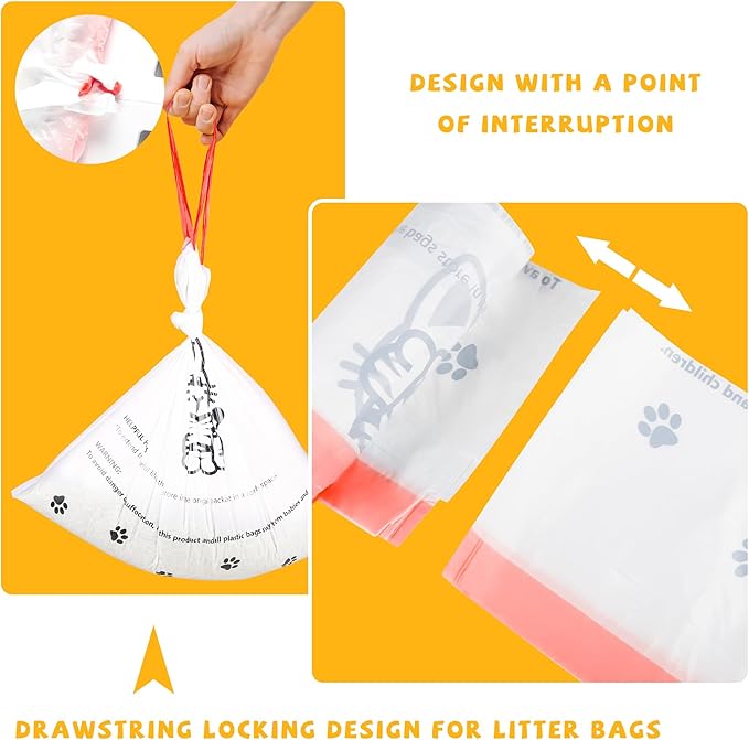 - Promote Cleanliness and Convenience - Our Pet Poop Bags make cat litter box cleaning even easier. Each bag can be used for approximately a week or replaced as needed for your cat, sealing in the waste with the drawstring for effortless disposal. This convenient solution enhances cleanliness indoors and simplifies the lives of pet owners.