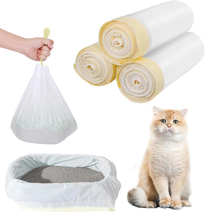 - 【DRAWSTRING DESIGN】Our cat litter tray liners have convenient drawstring closures that prevent the litter from exposing, and the semi-circular design is easy to pull out. And it can prevent the smell from overflowing. Save your cleanup time, perfect for the busy household of cat lovers.