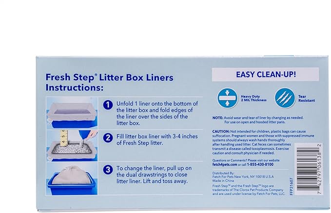 - FITS MOST LARGE CAT LITTER BOXES - These Fresh Step jumbo litter box liners will fit most large litter pans and can conform to rectangular (up to 22” x 16.6” x 8.5”) or oval shaped (up to 26” x 18” x 10”) boxes, as well as covered or open boxes.