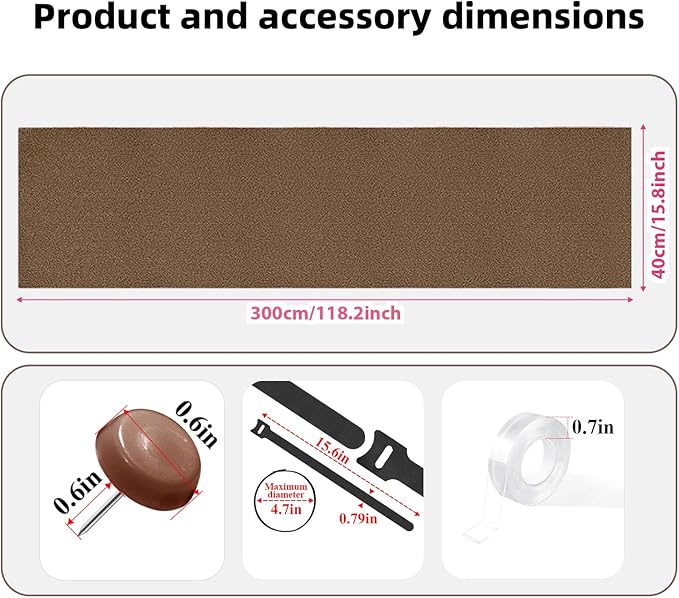 - Cat Couch Protector Set: The package includes 1 roll of 78.7"x15.8"(200x40cm) self-adhesive cat scratching mat, 1 roll of nano double-sided tape, 30 fixing nails the same color as the cat mat, and 4 fixing nylon ties to help you better fix the cat scratching carpet. Tips: If you need to wrap round or square items, please use the included accessory nails or nylon ties to fix them after wrapping.