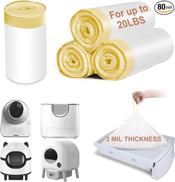 ELEGX 80 Count Litter Box Liners, 3MIL Extra Thick Heavy Duty, Automatic Self Cleaning Litter Robot Cat Waste Bag, 26.6" x 16.7" Compatible with S1,AUTOCLEAN-1 and M1/CAT LINK/Zea Cotio/Furoo mate