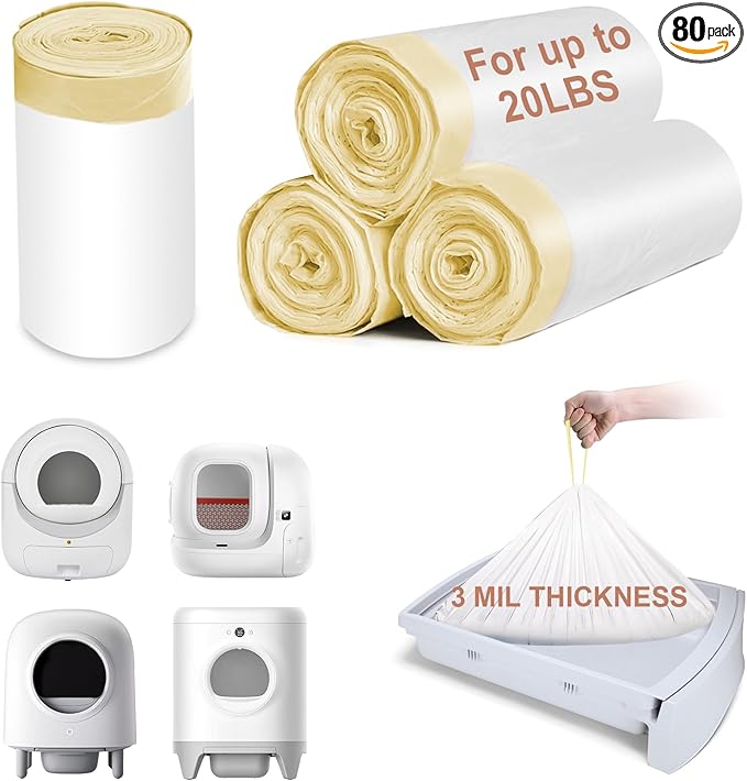 ELEGX 80 Count Litter Box Liners, 3MIL Extra Thick Heavy Duty, Automatic Self Cleaning Litter Robot Cat Waste Bag, 22" x 13" Compatible with Cleanpethome/Pura X/MAX/Petkitt/Pet ree
