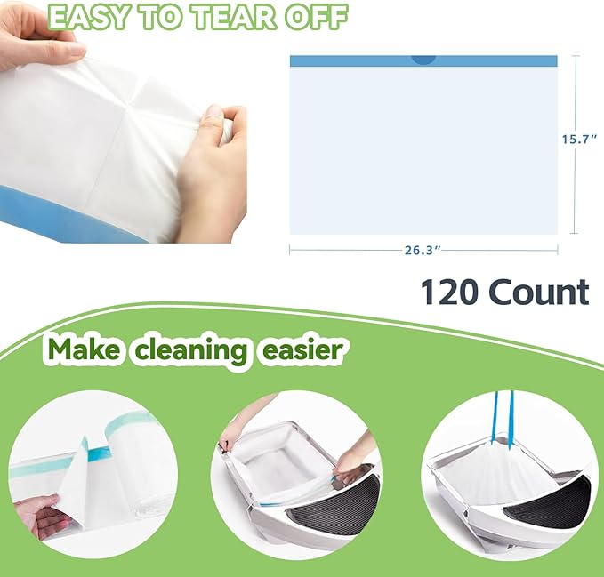 120 Count Waste Bags For Robot 4 and 3, Litter Box Liners For Automatic Cat Litter Box, Cat Litter Box Liners Waste Bags Replacement (26.3'' x 15.7'', 120 Count)
