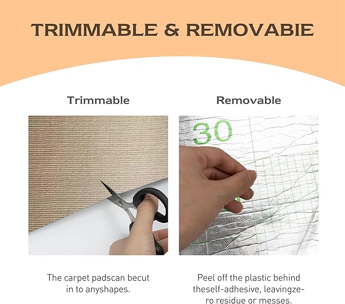 - Non-slip Self-adhesive Design: The bottom of the trimmable self-adhesive carpet cat scratcher is made of 100% self-adhesive material, which can be firmly pasted on any wood, glass, cotton and linen fabrics, and leather surfaces, with strong adhesion and will not be easily torn off, so you can rest assured that it will be used