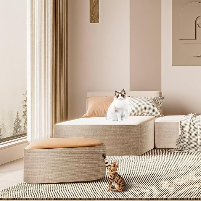 Trimmable Cat Scratching Post Carpet 78.7"x15.8" Self-Adhesive Cat Scratching Mat Cat Carpet Replacement for Cat Tree Wall Shelves Couch Furniture Protector (Khaki)