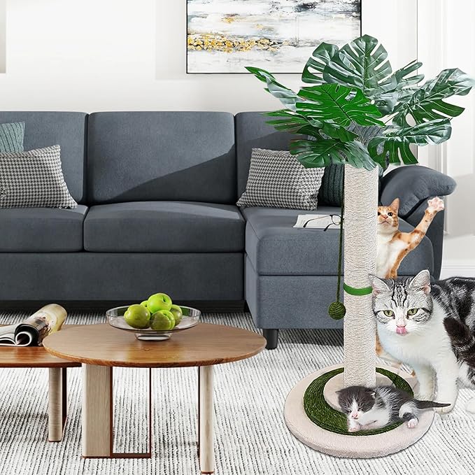 - 【Keep Furniture Away from Cat’s Claws】Cat scratcher keeps cats away from damaging carpet, sofas, curtains, and more.The scratching post tree catches your cat’s attention so that it will no longer be interested in destroying the furniture in the home.Furthermore, the scratching post is tightly wrapped with 100% natural sisal rope, which won't fall off or peel off even after long time use.