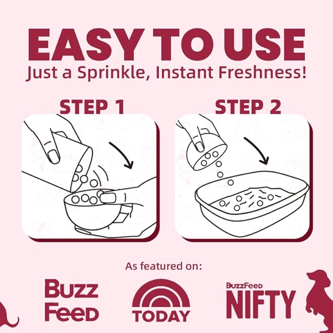 - Unparalleled Litter Box Odor Eliminator: Enjoy immediate odor neutralization with a simple sprinkle. Our litter odor eliminator not only tackles odors on contact but also keeps your cat’s litter box continuously fresh, reducing the need for frequent scooping.