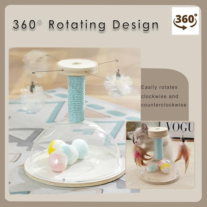 - Not easy to overturn: The cat turntable toy is made of high-quality natural solid wood. It's heavy enough to withstand the cat's crazy scratching, pouncing the playing balls, not easy to tip