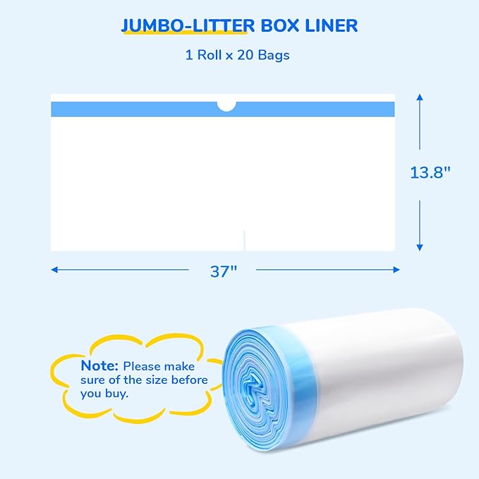 Cat Litter Bags with Drawstring, Size 37"x 13.8", Large Litter Pan Liners Compatible with Pet Scoop Free Self-Cleaning Box Tray, Tear and leak proof Pet Waste Bags, 20 Count