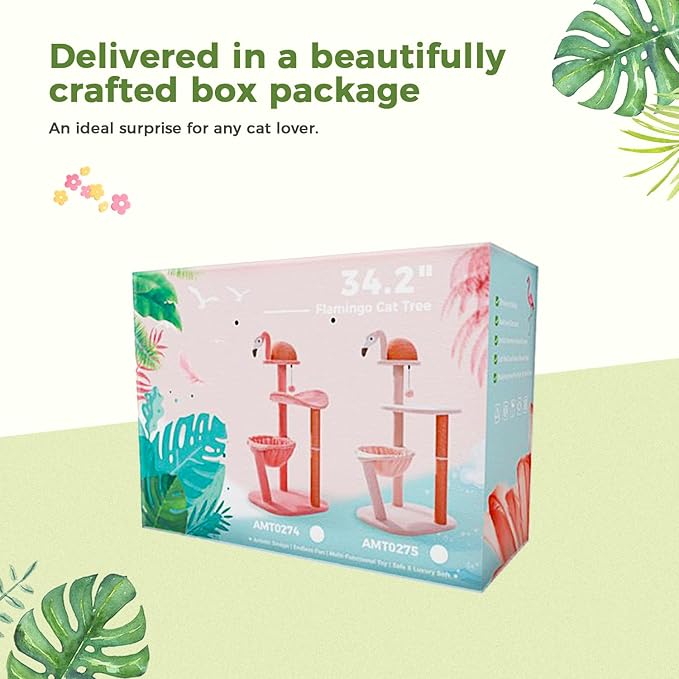 - Elegant Flamingo-Inspired Design: This pink cat scratching post features an elegant flamingo design that adds a decorative touch to your home. The artistic flamingo shape of this tall cat scratcher not only serves as a functional cat post but also enhances your interior decor