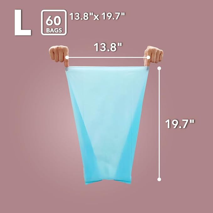 BOS Odor-Sealing Cat Poop Bags for Pet Waste & Kitty Litter - Disposal Bags - Scent & Smell Free[Size: L, Color: Light blue] (60 count, Pack of 2)★Brand-new packaging!! ★NOT a litter box liner