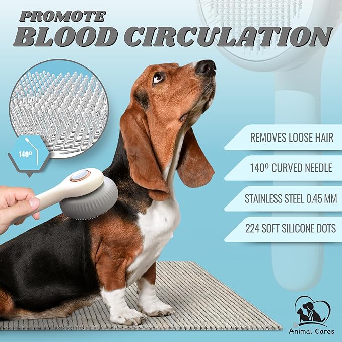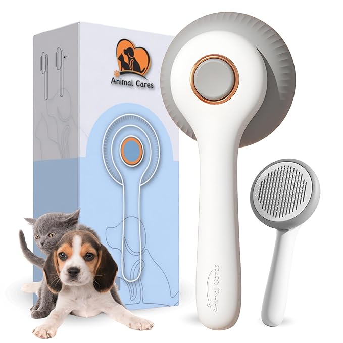 Self Cleaning Pet Brush for Dogs Cats Grooming Tool Removes Loose Fur Reduces Shedding Safe Silicone Tips Comfortable Ergonomic Handle Suitable for Short Medium Long Hair Hypoallergenic for All Pets