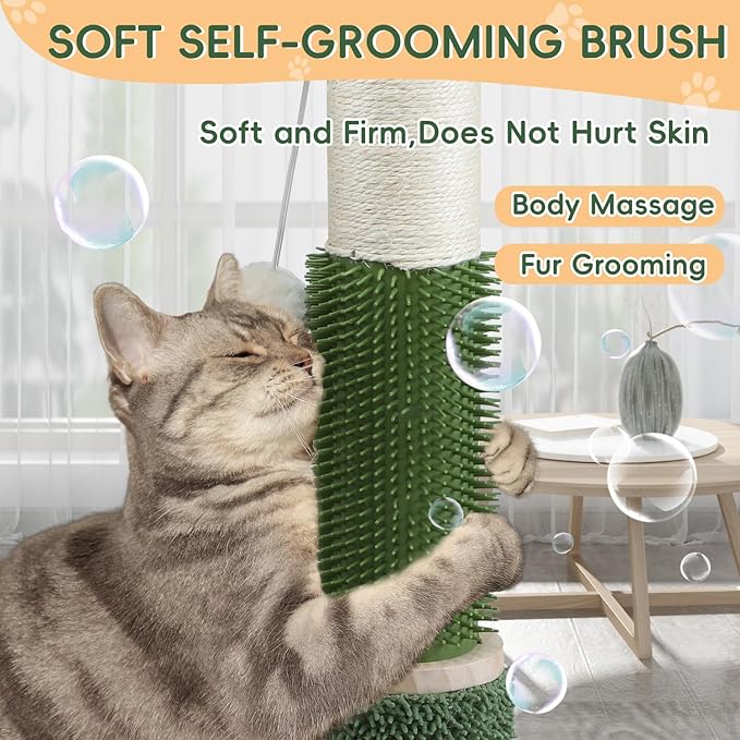 - 【5 in 1 CAT SCRATCHING POST】we designed the product with a solid wood interactive ball toy, which is a favorite of all cats! The addition of the Hollowing Hanging Ball fully stimulates your cat's exploratory instincts! There is also a self-combing device for massaging and grooming!